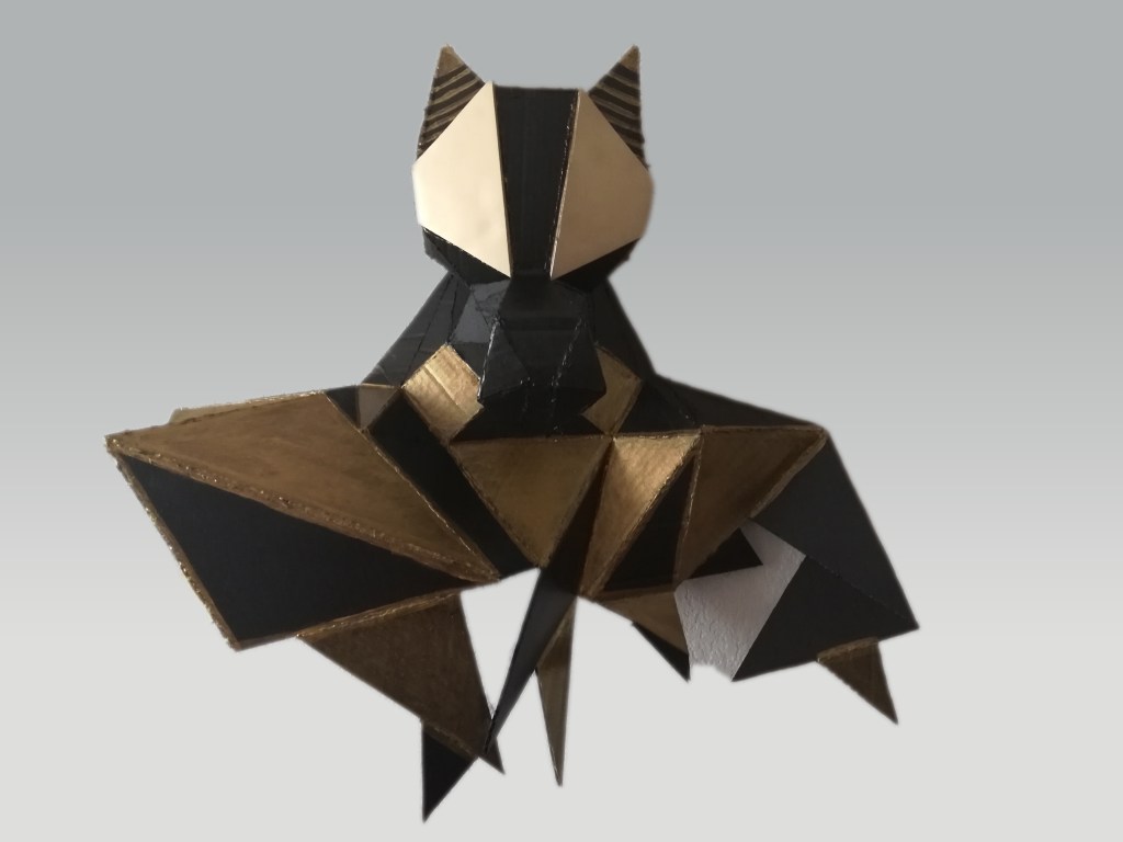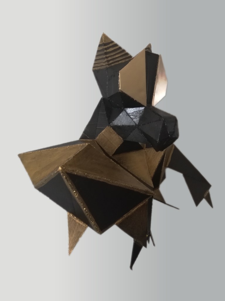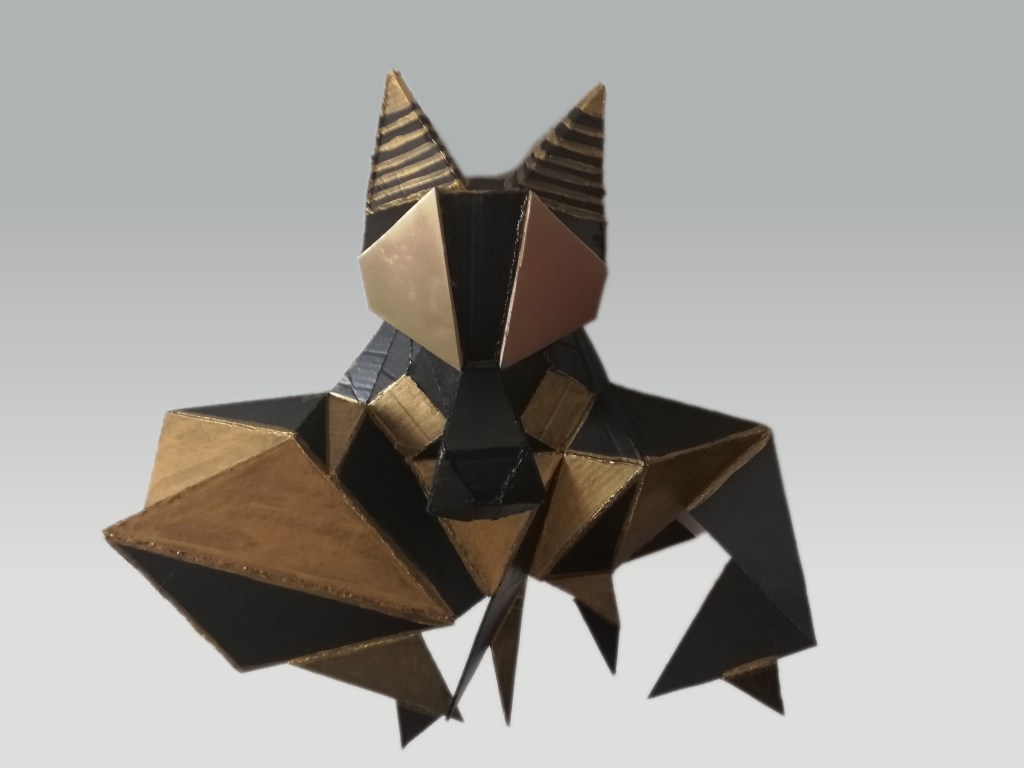 When I was about 11, I developed a dual fascination with ancient Egypt and the UFO phenomenon. I was captivated by the possibility of a connection between the two and often daydreamed about traveling back in time to ancient Egypt aboard a UFO. Being an only child gave me plenty of time and quiet to imagine worlds within worlds. I was especially drawn to the god Anubis, the deity of the afterlife. For this Design II assignment, I recreated the figure of one of my husky pets, Rush, and stylized it with geometric shapes to evoke the essence of the ancient god.